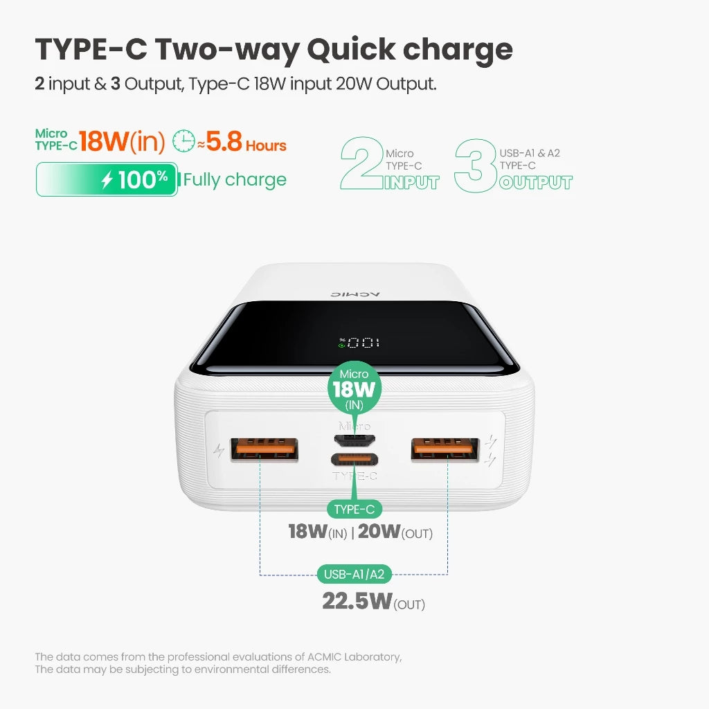 ‣ Output: DC 5V3A/9V2.22A/12V1.67A 20W MAX (Type-C)