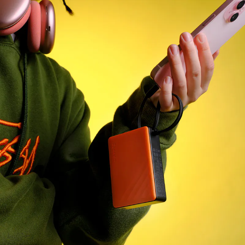 - Built-in USB-C Cable, USB-C + USB-A ports, capable of charging up to three devices simultaneously.
