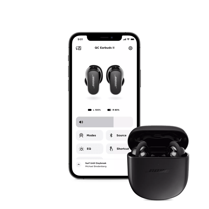 Bose QuietComfort Earbuds II are the next generation of wireless listening. Enjoy the best in sound and noise cancellation that is perfectly yours. You always get the best sound quality because CustomTune technology auto-adjusts it to your ears’ liking, personalizing sound to the shape of your ears for an immersive listening experience. Tune out in Quiet Mode when you silence background noise with the world's best noise cancellation. When it's time to pay attention, Aware Mode allows enough transparency to hear your surroundings or engage in friendly conversation.