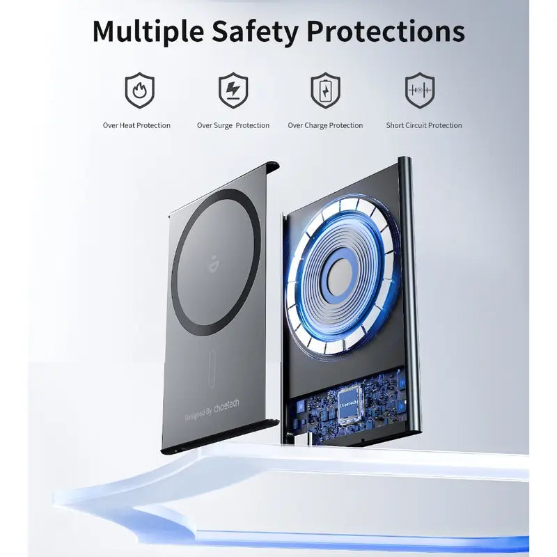 You can always have the Choetech SuperThin B708 power bank with you - even in the smallest bag. It has an exceptionally slim design with a thickness of only 5.5 mm! It has been equipped with a magnetic module that allows for wireless charging with a power of up to 5W. Universal compatibility with iOS and Android devices makes it a must-have for every smartphone user. Additionally, advanced security protects your devices against overvoltage, overheating or short circuits.