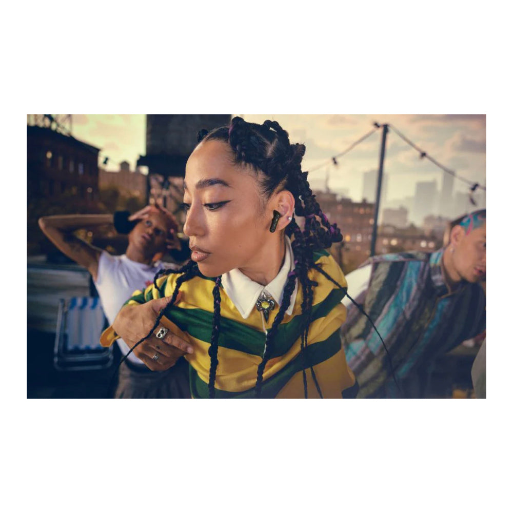 JBL Tune Beam 2 earbuds use Adaptive Noise Cancelling to tune out noises entirely or just let in as much of the outside world you want. Ambient Aware adapts how much of the outside world you want to hear, while TalkThru lets you talk with those around you—all without taking your earbuds out.