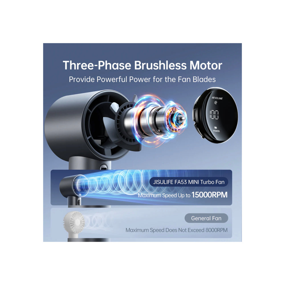 The JisuLife Handheld Fan Pro 1 is a portable, rechargeable fan available in multiple colors. Its compact design makes it easy to carry and use, perfect for hot days or outdoor events. With three adjustable speed settings, the fan provides customizable airflow to keep you cool. The rechargeable battery ensures hours of use, while the lightweight and ergonomic design enhances comfort, making it a practical choice for on-the-go cooling.