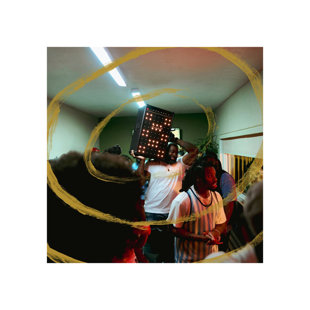 Start the party inside then head out. Its IP54 rating and built-in drainage system takes care of rain and dirt. Getting dusty between performances won’t affect it either.
