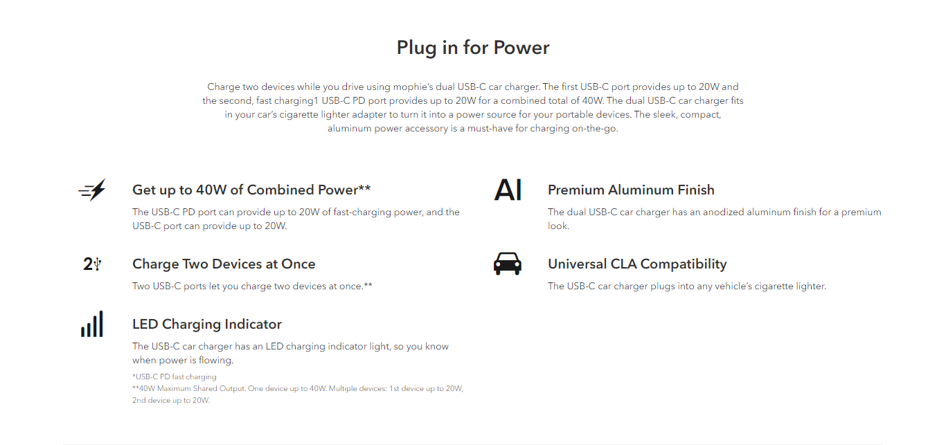 Mophie-ACC-Car Charger-Dual USB C-40W-space gray