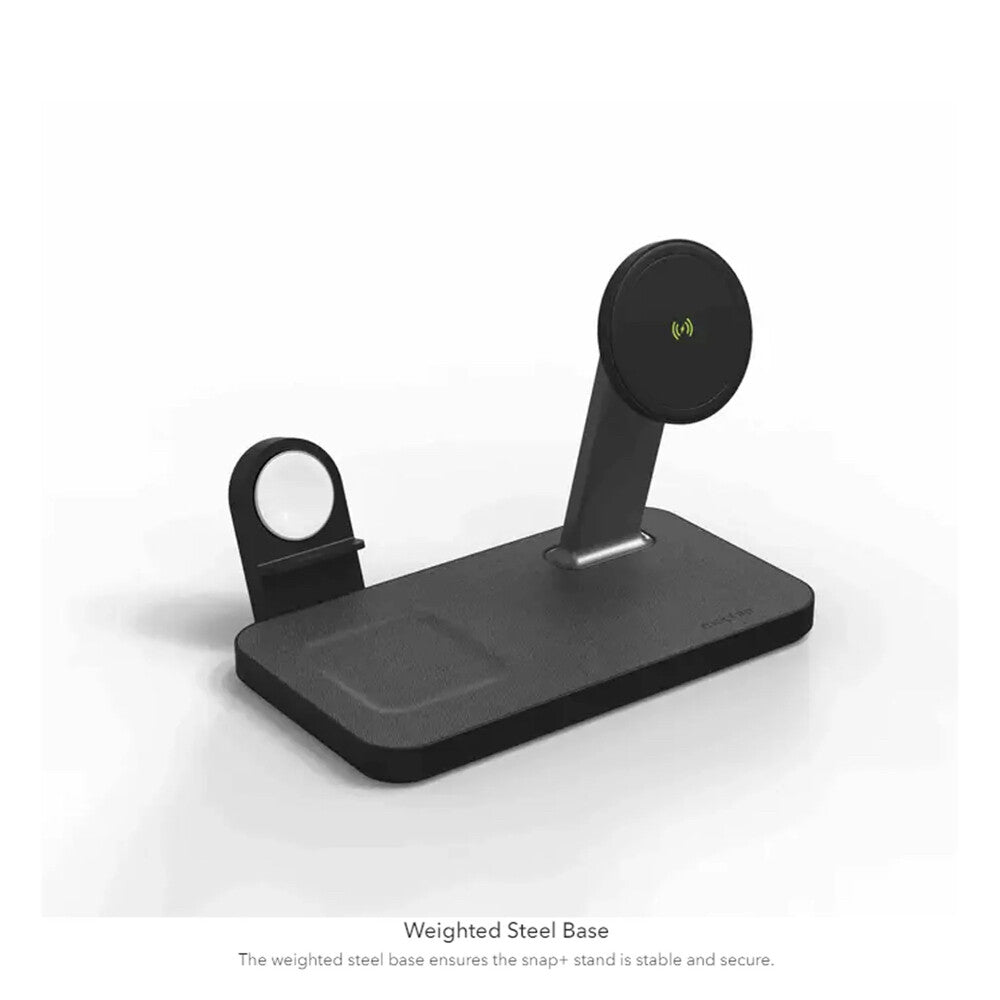 The snap+ 3-in-1 wireless charging stand delivers up to 7.5W to iOS devices and up to 15W to Android devices.