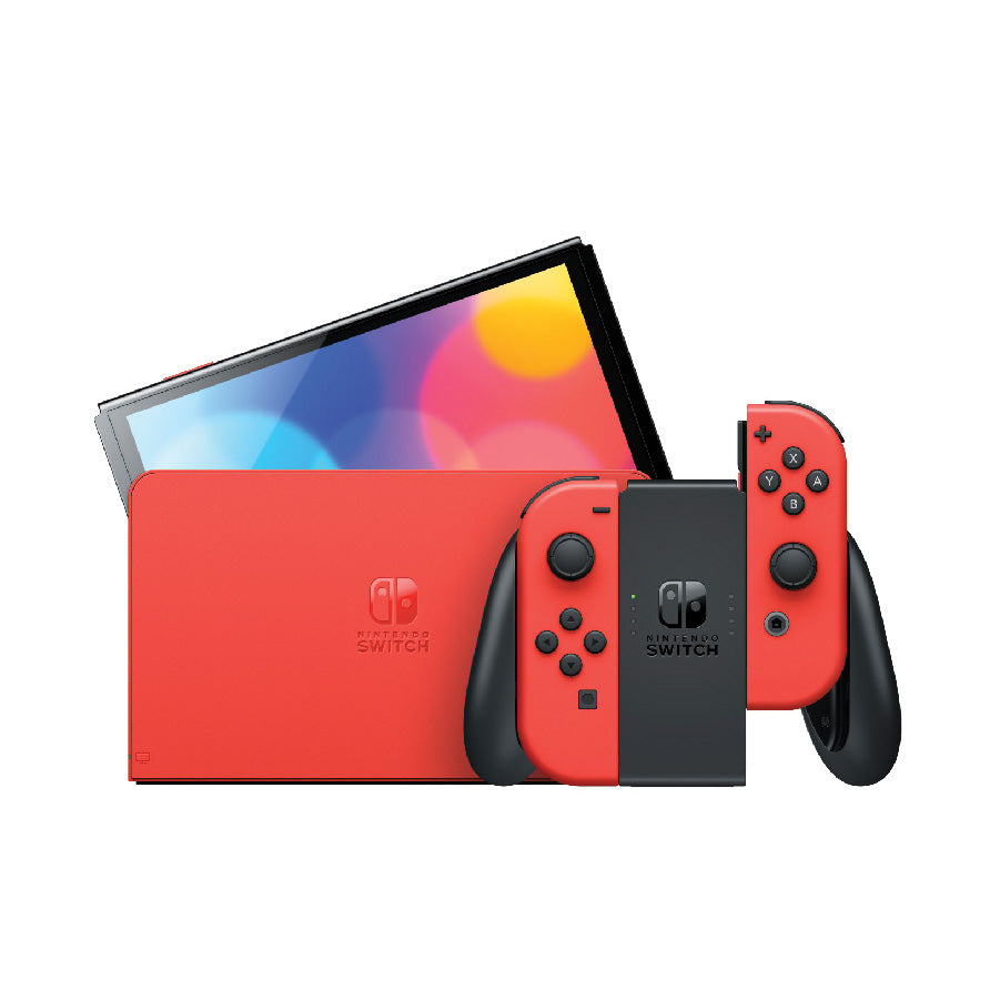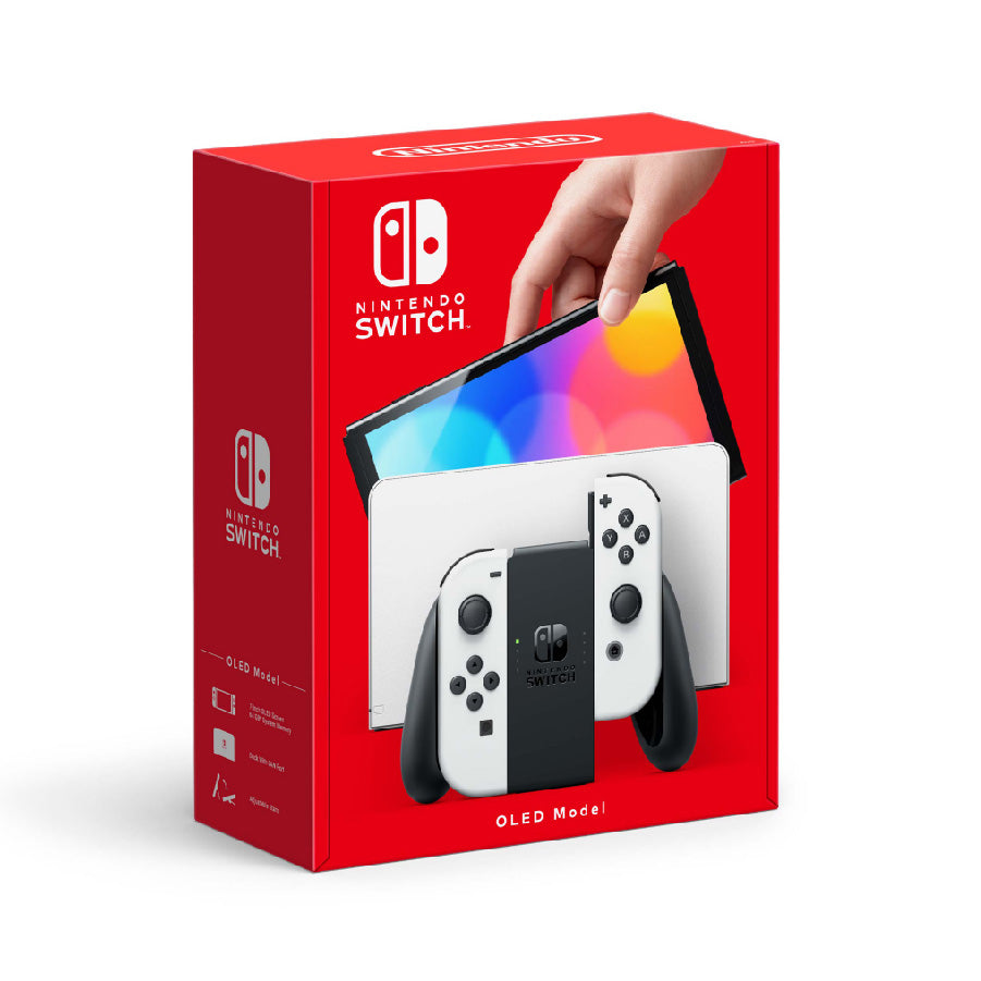 This model features a vibrant 7-inch OLED screen, a wide adjustable stand, a dock with a wired LAN port (LAN cable sold separately), 64 GB of internal storage (a portion of which is reserved for use by the system), and enhanced audio in handheld and tabletop modes.