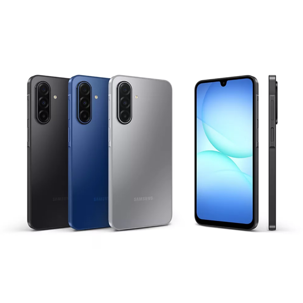 Samsung Galaxy A17 is powered by a Exynos 1330 (5 nm) CPU processor with 128GB 4GB RAM, 128GB 6GB RAM, 128GB 8GB RAM, 256GB 8GB RAM. The device also has a 6.7-inch Super AMOLED (1080 x 2340 pixels, 385 ppi) display. It has a Triple: 50 MP, f/1.8, (wide), 1/2.76\", 0.64µm, AF, OIS + 5 MP, f/2.2, (ultrawide), 1/5.0\", 1.12µm + 2MP rear camera and supports Wifi, Bluetooth, NFC, GPS, 4G LTE and 5G. It packs in a 5000 mAh battery at 7.5mm device thickness and weight 192g, running on Android 15, up to 6 major Android upgrades, One UI 7.