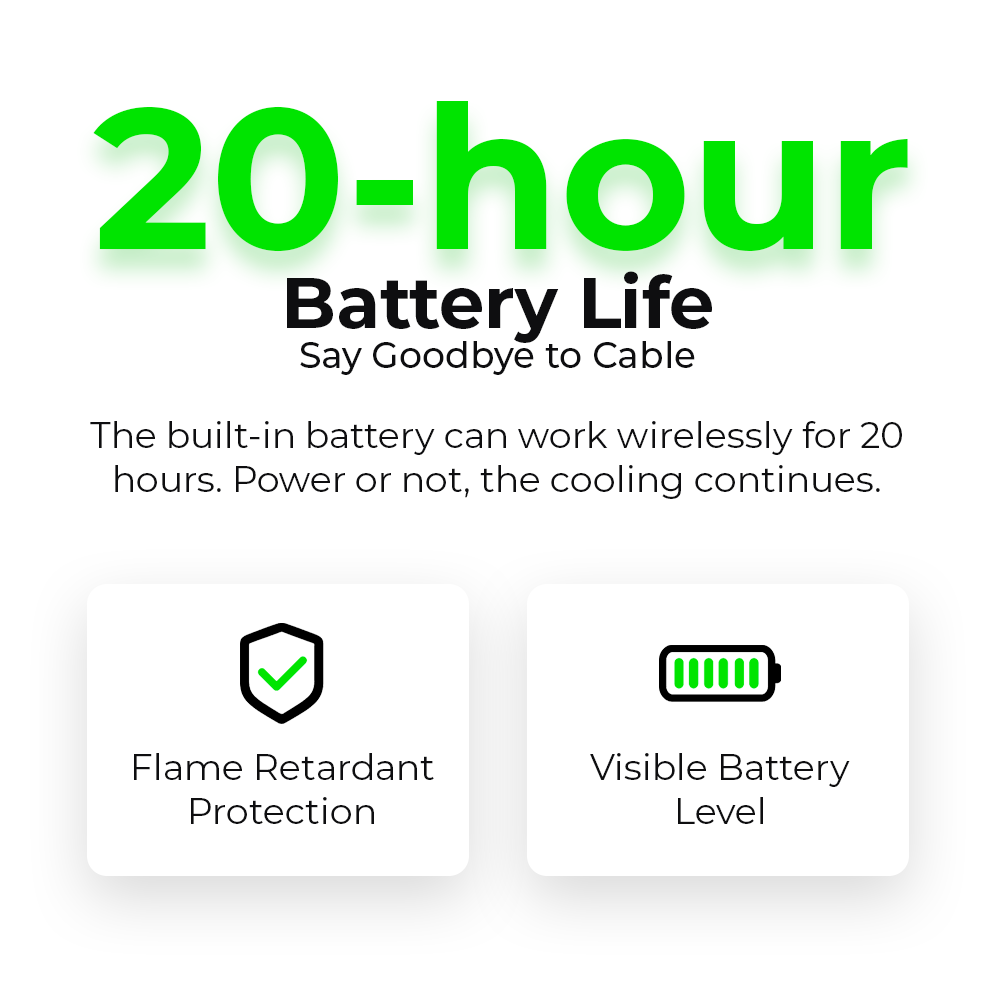 Rechargeable Battery - The rechargeable battery allows for flexible placement and cordless use, providing the convenience of moving the fan to any desired location.