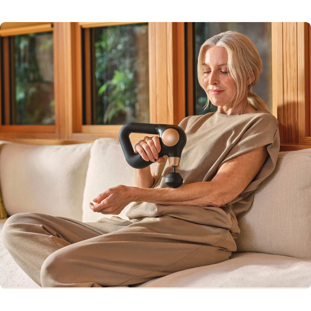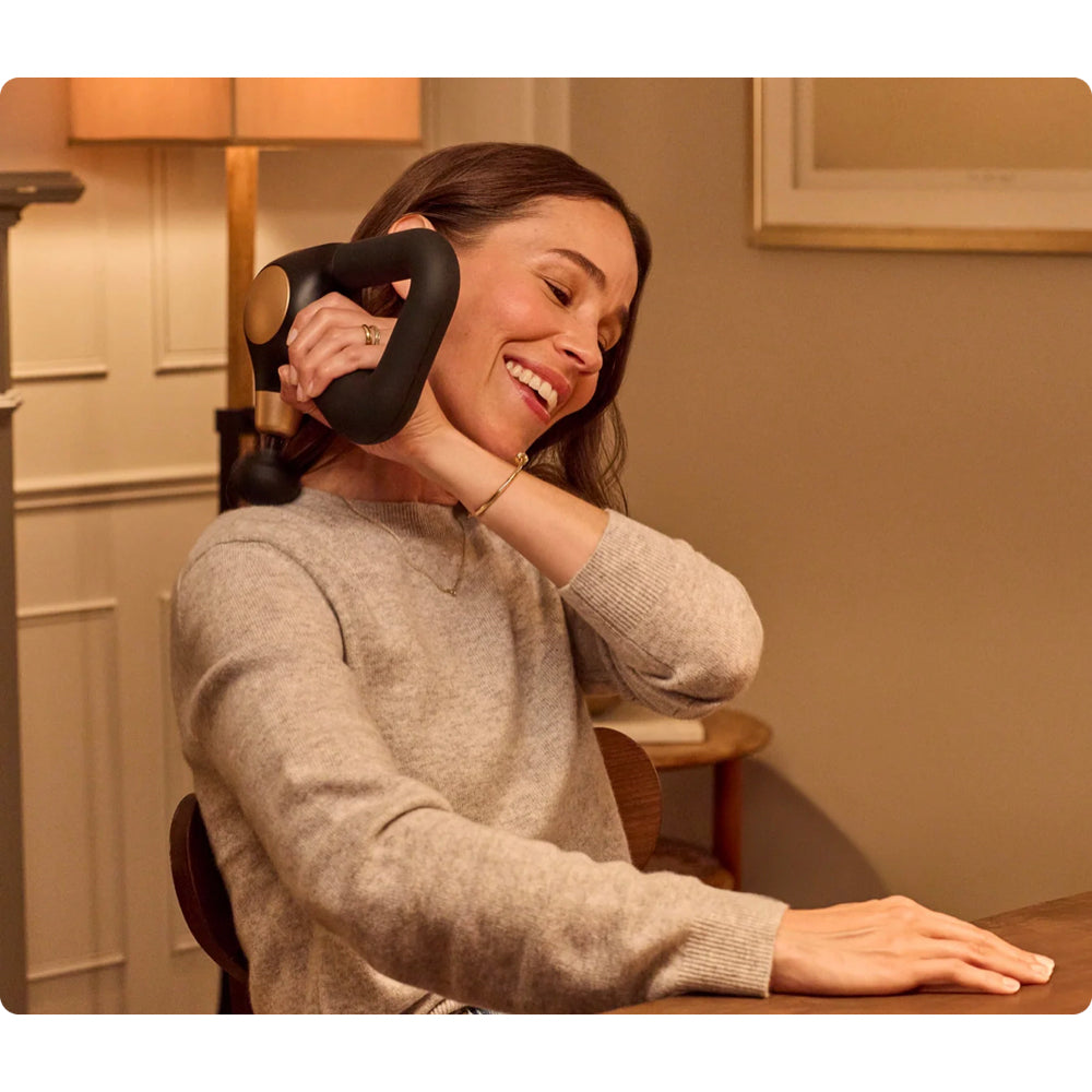 Your daily two minute stress reset starts with Theragun Sense — the only Theragun made for stress relief. Its built-in LCD screen acts as your personal guide with step-by-step massage gun routines to ease tension, reduce stress and improve sleep so you can keep up with your busy lifestyle.