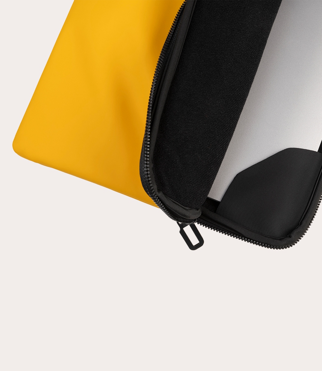 Waterproof cover in rubberized material designed for 14” laptops and the 15” MacBook Air. Featuring a single padded compartment with non-slip corner flaps the Gommo laptop cover has a handy external pocket for accessories.