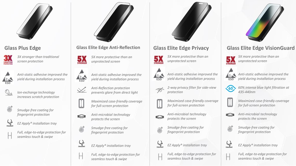 Introducing Glass Plus Edge – the ultimate guardian for your device. With 3X shatter protection, it's like an invisible armor for your screen. Embrace full-screen coverage, keeping your device safe from edge to edge. Worried about scratches and smudges? Don't be. Our precision surface finish fights off scratches while the oil-resistant coating keeps fingerprints at bay. And yes, it feels as smooth as it looks, offering remarkable touch sensitivity. Applying it is a breeze with EZ Apply® tabs and anti-static technology. Experience the difference with Glass Plus Edge.